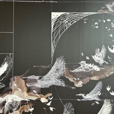 Acrylic, charcoal, & Gouache on canvas